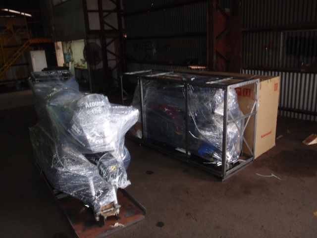 Or so we thought. As it turns out a miscommunication with Customs meant that we had to wait to get the bikes checked off before we could load them.